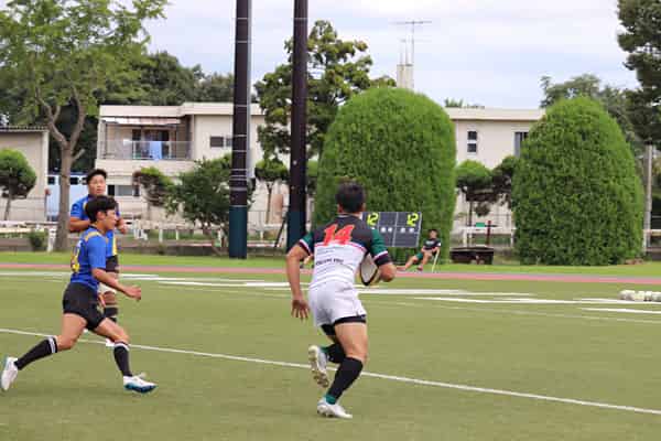 前半開始早々、WTB花田がトライするとリズムよくWTB山﨑、PR檀野もそれぞれトライを決めます。その後明治学院大学に2トライ奪われ19-12に。しかしその後WTB山﨑、WTB花田がこの試合2トライ目をそれぞれ決め、大きく点差を引き離します。その後もNO8石川(晃)がトライ、最後はFB堀田が息の合った連係プレーでパスをもらいそのままトライし、47-12で前半を折り返します。後半開始5分、CTB岩佐がトライを決めると続けて連続で2トライ目を決めます。その後もLO並木もゴール前より力で圧倒しトライ、WTB阿久津が軽快なステップで相手をかわしそのまま独走しトライを決め点差を広げます。1トライ奪われるものの、最後はFB磯部がトライを決め82-17でノーサイド。勝利致しました。