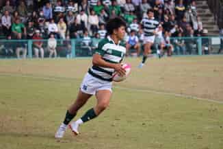 前半開始早々、トライを決められ先制点を奪われます。その後両者譲らず、中盤に流通経済大学が続けてトライを決め点差を広げます。しかし後半33分、ロングパスで大外に展開しWTB水野(景)がトライ。その後も逆転を狙いにアタックを仕掛けますが、2トライ奪われ5-24で前半を折り返します。後半開始早々、ゴール前のスクラムより出たボールをNo8志賀が自ら持ち出しトライを決めます。その後1トライ奪われますが中盤、ゴール前FWが力で押し込みFL佐藤(匠)のトライ。しかし2トライ奪われ19-45と点差を広げられます。終盤にはフェーズを重ね敵陣に攻め込み、最後はキャプテン郡司がトライを決めます。その後も2トライ奪われますが、ラストはゴール前でFWが粘り強くタックルし続け、LO田邊がトライしノーサイド。33-57で敗戦致しました。