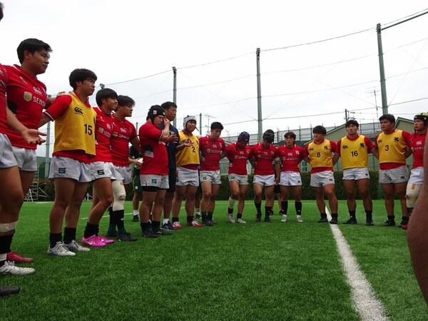 後半に入り、粘り強いディフェンスで失点を許さず膠着状態が続きましたが、16分に相手ボールラインアウトのミススローをSH宮川がキャッチし、そのままバックスへ展開し、うまくつなぎ最後にいいコースをサポートしていたSH宮川がトライし21-33となります。28分にトライされた後、再三アタックを仕掛けますが、トライを奪えず最終スコアは、21-40でした。