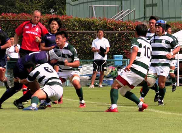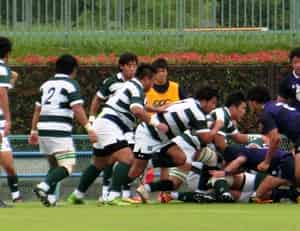 後半はフォワード中心に攻め後半残り1分でFBの浦中選手がPGを決めて逆転。