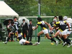 後半は、開始早々にトライをあげ、その後も着々と得点を重ねました。後半に6トライ4ゴールを加え、最終スコアは50-5で勝ちました。