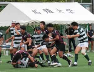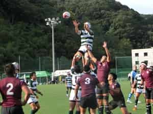 後半、なかなか追加点を奪えず自陣でのプレーが多いなか、20分にようやく敵陣ゴール前のモールを押し込みPR門のトライで突き放しました。FL棚谷、途中出場のHO山田のトライで追加点をあげましたが、後半終盤に2トライを許してしまい、39-21のスコアで勝ちました。