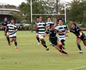 スローフォワード・ノックオン・オフサイド等の反則が多く反省点も多いのですが、この試合で1年生のプロップの梶原、ナンバー8の徳田が初スタメン、リザーブの児玉が初出場。ウイングで活躍している池田が3トライをあげ、ロックの西村もハードワークでチームに貢献するなど、1年生の活躍が今後のリーグ戦で勢いをつけてくれそうです。