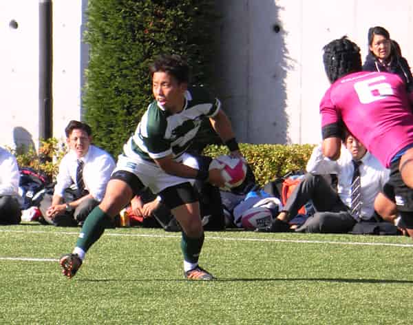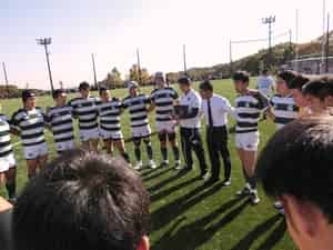 後半、先手を奪うと臨みましたが、5分にPG、7分にトライをあげられ苦しい展開。20分に今年初スタメンとなったウイング上田のトライで20-24と追い上げました。國學院大の捨て身のタックルでなかなか得点が奪えず、逆に27分にトライを許し20-31と11点差。ここからベンチが動き、リザーブの選手を次々と投入。28分にスクラムハーフ田辺・スタンドオフ小田、さらに古屋・梶原の両プロップ・フッカー山田、センター吉田を投入し、攻撃のリズムが生まれ、35分に梶原がトライをあげ27-31。さらにフランカー政本、ロック南都を投入。ロスタイムに入り、相手ゴール前での攻防が続き、フォワードが再三アタックを仕掛けてプレッシャーをかけ、最後はスクラムハーフの田辺が逆転のトライ!34-31で逆転勝ちしました。