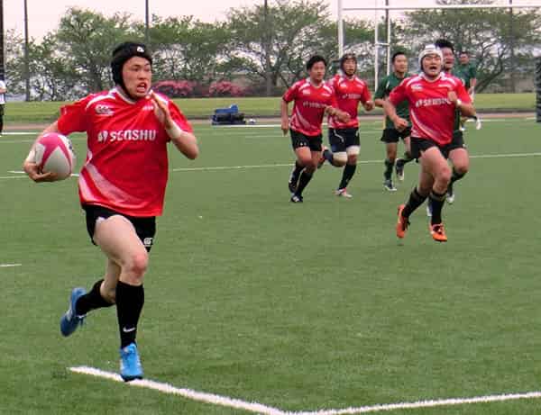 前半は、3分・8分にトライをあげいい出足でしたが、相手のねばり強いディフェンスもありその後1トライに抑えられ、19-0で前半を終了。後半はバックスがよい展開をみせ7トライをあげました。最終スコアは66-0でした。1年生にとっては初めて対外試合でしたが、いいプレーが数多くみられ今後が楽しみです。松戸倶楽部の皆様、遠方より来ていただきありがとうございました。