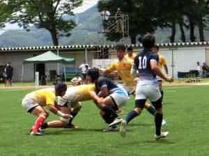 Aチームは田辺の個人技で先制トライをあげますが、なかなか追加点を奪えず逆に2トライを許し逆転されました。前半終了間際に再び田辺のトライで逆転し、14-12で折り返し。後半は終始相手のペースとなり失点を防げず26-56で敗れました。
