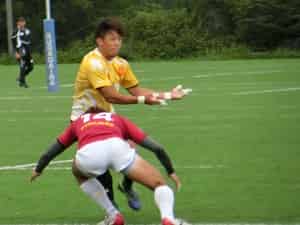 開始早々、相手のスピード感溢れる攻撃を止められずトライを許しますが、その後は低いタックルとダブルタックルで相手の攻撃を防ぐとともに、ターンオーバーして得点を重ねました。連続攻撃で外へ展開してトライをあげるなど合宿で取り組んできた成果が出てきたと思います。最終スコアは36-12で勝ちました。