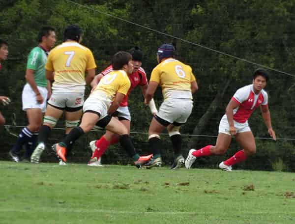 Aチームは開始早々先制トライをあげますが、その後パスミスやタックルミスが目立ち始め、4トライを許し5-26で前半を終了。後半はすぐにトライをあげ反撃というところでしたが、後半もディフェンスが甘く失点を重ね、19-40で敗れました。最後の2試合は課題が浮き彫りとなったゲームとなりました。開幕までに修正したいと思います。
