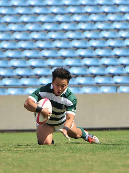 前半7分にWTB池田が大きくゲインし、サポートしたSH古川が中央に先制トライ!。続く22分にペナルティーゴールをFB田辺が決めて10-0とリード。相手のアタックを再三ロータックルで食い止め、得点を許しませんでしたが、36分にインターセプトからトライを奪われ、10-7で前半を折り返しました。