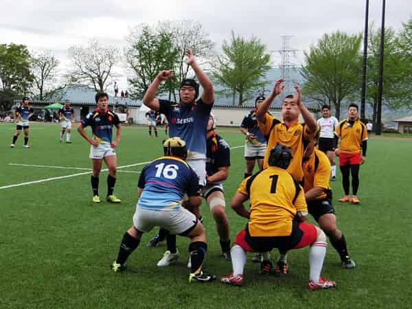 1年生を中心としたメンバーでのぞみました。前半は15分までに3連続トライを奪われる苦しい立ち上がり。SH阿久津・SO光吉の連続トライで前半は14-21で終了。後半12分にCTB夏井のトライで同点とすると、相手の動きが鈍くなってくると、5トライを追加し54-26で逆転勝利となりました。1年生は溌溂としたプレーをみせ今後のオープン戦での活躍が期待されます。松戸倶楽部の皆様、遠方より来ていただきありがとうございました。