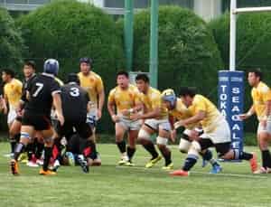後半は、一進一退の攻防が続きましたが、13分に東海大学がトライ。すぐさまセンター水野がトライし、14-24。さらに23分に連続攻撃から9→10→14とつなぎウイング池田がトライして19-24としました。37分にトライを許し、最終スコアは19-31でした。