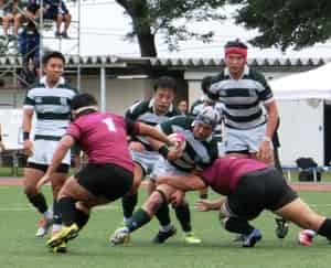 後半、ペナルティを繰り返し自陣での時間が多かったのですが、9分に相手のノータッチキックをFB田辺がカウンターで大きくゲインし、最後はLO西村がトライ。何度かゴール前まで攻め込まれる場面がありましたが、前に出るディフェンスで得点を許さず、31分にモールから途中出場のPR石田が、36分には連続攻撃で途中出場の兒玉がトライ、最後にWTB上田が43分にダメ押しのトライをあげ、50-0でノーサイドとなりました。