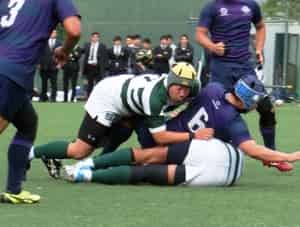 前半は、5分に連続アタックからゴール前まで迫り最後はフッカー見學がトライし7-0とリード。15分にPGを、21分にはキックをチャージされ、そのまま拾われてトライを許し7-10と逆転されます。27分にWTB池田のカウンターからCTB山崎につなぎ最後はFL吉國がトライし14-10と逆転!。36分にはバックスがつなぎFB田辺がトライし21-10と突き放します。40分にPGを返され前半は21-13の8点リードで折り返します。