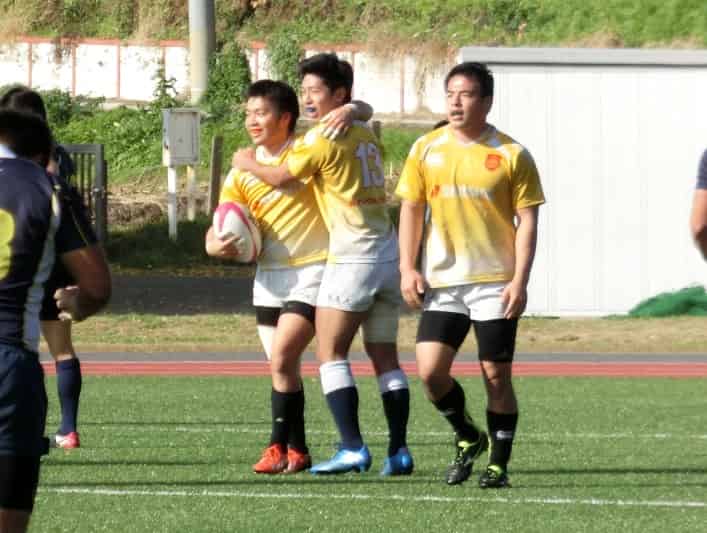 後半は、テンポのよい連続攻撃から最後はフルバック田辺がトライし、19-21と2点差に。2本のペナルティゴールで25-21と逆転したあと、トライを奪われ再びリードを許しましたが、33分に後半から出場したウイング池田がトライし、30-28と再逆転します!しかし38分にトライを許し30-33でノーサイドとなりました。