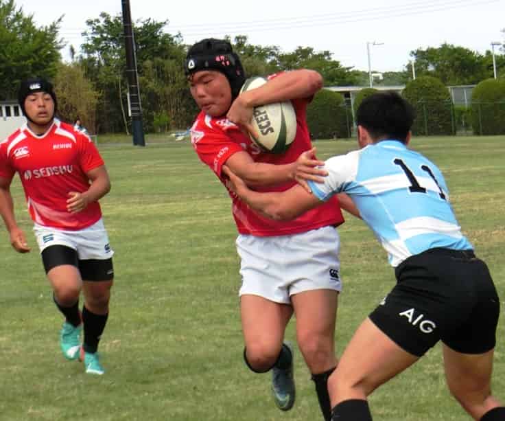 前半から、フォワードがスクラムを圧倒し、次々にターンオーバーを繰り返します。バックスはフォワードのいい球出しから大きく展開し、トライを量産しました。1年生は随所にいいプレーを見せてくれ、特にナンバー8原、スタンドオフ夏井はともに4トライといいランニングを披露しました。ディフェンス面も最後まで集中を切らさず、無得点でおさえ、最終スコアは104-0でした。