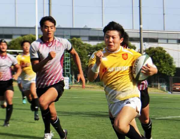 Cチームは、前半5-15とリードされましたが、後半見事な攻撃でロック大川、WTB寺下、FB新名、PR檀野、SH鎌田と1年生の5人がトライをあげ、38-27と逆転勝利しました。1年生は、大学での環境やチームにも慣れてきて、フィットしてきました。今後はさらに良くなっていくと思われます。