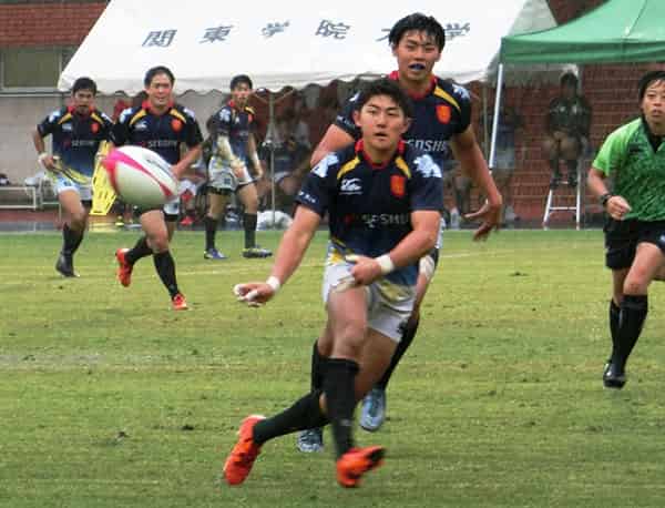 12時から行われたAチームの試合は、前半2トライを先制され苦しい立ち上がりとなります。21分にFL吉國のトライで反撃するも、すぐに2トライを返されます。しかし前半終了間際に再びFL吉國がトライし、14-24で折り返します。後半、立ち上がりに先手を奪われますが、すぐにラインアウトからモールを押し込みFL吉國がこの日3つ目のトライ!。さらにバックスのサインプレーが決まりCTB水野(佑)がトライし、28-31と3点差に。この後1トライ奪われますが、ディフェンスを修正し粘り強くタックルし、失点を防ぎます。27分にPR兒玉がトライし1点差に。32分に相手ゴール前で得たペナルティを、FB松浦が冷静に決め、38-36と逆転します。この後相手の攻撃を抑え、このままノーサイドとなりました。