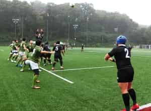 後半の立ち上がり、キックオフから連続アタックを仕掛け、最後はウイング山崎(凌)がトライ、3分にはセンター木元のキックを山崎(凌)が押さえ、一気に27-0と突き放します。その後3トライを許しますが、1ペナルティゴールと途中出場のプロップ森重とロック殿元のトライを追加し、44-21で勝ちました。