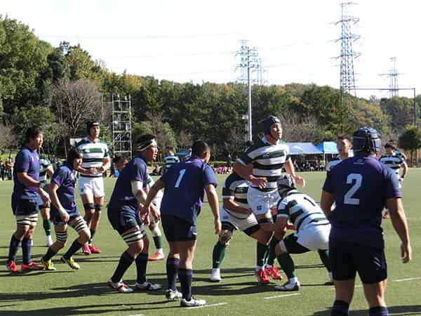 後半に入り、3分にロック西村がこの日2つ目のトライをあげ、5分にはスクラムハーフ高橋がトライし、一気に33-3と突き放します。この日は、ディフェンスがよく何度もゴールライン手前まで攻められますが、激しいタックルで相手のミスを誘い、ノートライに抑えました。15分、37分にフランカー坂本が連続トライをあげ、47-3で勝利しました。
