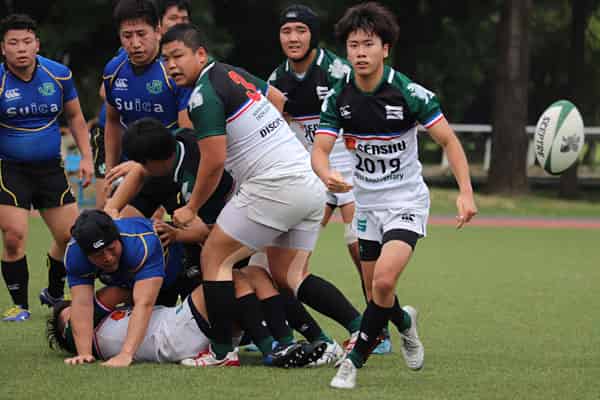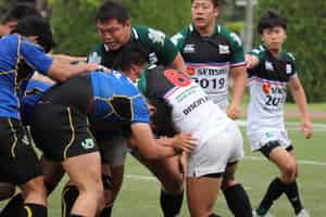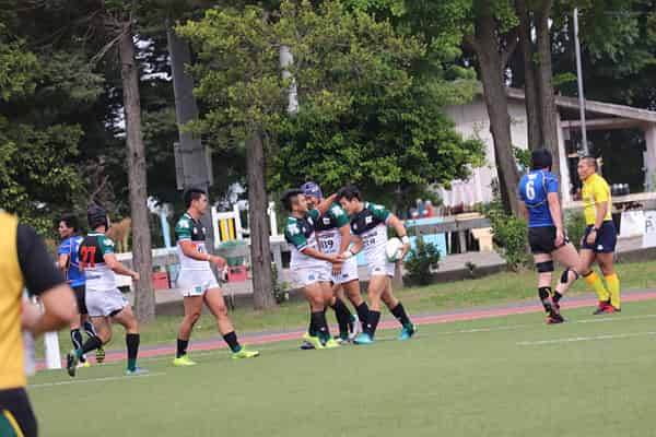 前半開始早々先制点を奪うと、連続攻撃で次々とトライを決めます。WTB阿久津は3トライを決める等の活躍を見せました。その後も攻めの姿勢を崩さず、48-0の無失点で前半を折り返します。後半もグランドを広く使い、のびのびとしたプレーをみせ、バックスがトライを量産。後半は1トライ奪われるものの、前後半あわせて17トライをあげ105-7で快勝致しました。