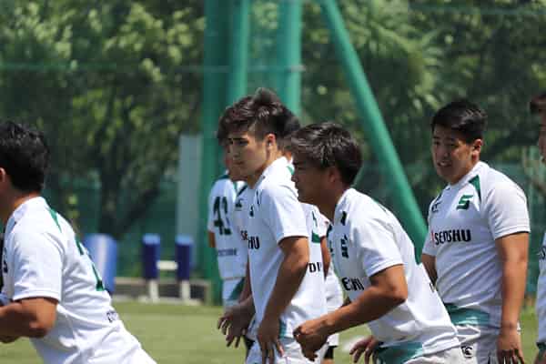 12時45分からCチームの試合が行われました。前半、東海大学が連続で2トライを決め先制点を奪われる形に。しかし中盤、1年CTB平山がトライを決め、続く34分にもトライをあげ点差を縮めます。その後東海大学にトライされ14-28で前半を折り返します。後半、序盤から立て続けにトライを奪われ、なかなか体制を持ち直すことができず点差は大きく広がります。終盤、相手のミスボールに素早く反応しターンオーバー、最後はWTB新納がトライを決め21-49に。しかしそのままノーサイドとなり21-49で敗戦致しました。