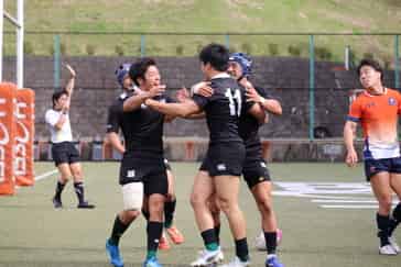 後半、序盤に1トライ奪われますが、中盤、ゴール前相手のペナルティから認定トライとなり、24-26と2点差に。その後大外展開し、パスを受けたWTB花田がこの試合2度目のトライを決め29-26と逆転します。続いて、CTB松尾(東)がキックしたボールをWTB古里が拾い大きくゲイン、その後SH安藤が自らトライし点差を広げます。終盤には、ゴール前相手のペナルティに素早く反応し、No8熊谷がトライ!そのまま41-26でノーサイド。勝利致しました。