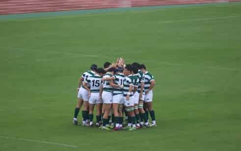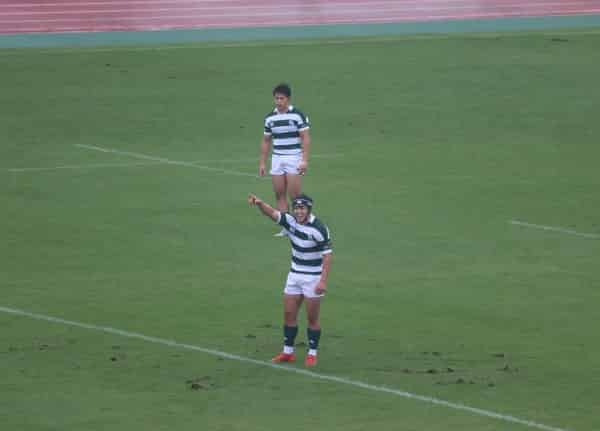 前半、中盤まで両者譲らず試合は拮抗した状態に。中盤、日本大学が先制点を奪い、リードします。その後も1トライを奪われ点差を離されます。終盤、FB古里がペナルティーゴールを確実に決め3点に。3-10で前半を折り返します。