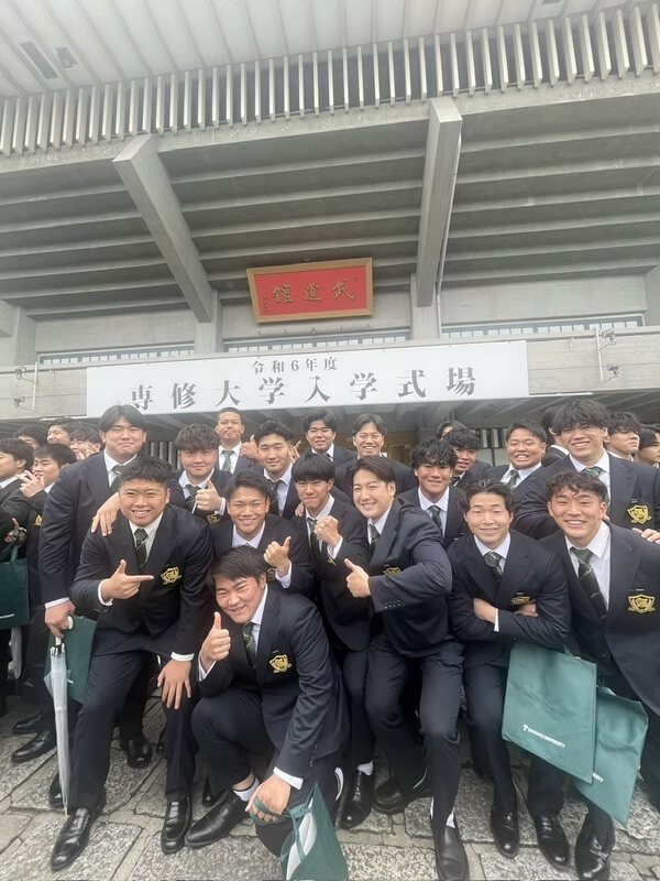 新入部員のみなさん、入学おめでとうございます。これから専修大学体育会ラグビー部の一員として悔いのない素晴らしい大学生活4年間を送ることができるよう、ともに頑張っていきましょう!