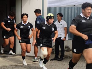 前半10分にハーフライン付近のマイボールスクラムから右に展開し、折り返して展開しSO中島が裏に抜けたところにサポートしたLO高橋につなぎ大きくゲイン、その後もFWBK一体となってボールをつなぎ、相手ゴール前まで迫った12フェイス目でラックのボールをWTB山本が右隅へトライし先制します。さらに18分にハーフウェイ付近のスクラムから右オープンに展開、WTB山本が華麗なステップで裏に出ると内側に切れ込み、逆サイドからサポートしたWTB佐藤(瑛)につなぎそのままトライ!14-0とリードを広げます。30分にトライを返された後、33分に敵陣10mからのラインアウトでBKへつなぎ右オープンに展開、FWが順目に展開した後、ボール受け取ったHO山内が空いた内側を走り込んできたFBアレックスへパスし、裏に抜け大きくゲインした後サポートしたSO中島へパスし中央にトライし21-7と再び14点リードとします。38分にトライを返された後、40分にFBアレックスがペナルティゴールを決め、24-12とリードして前半を終了します。