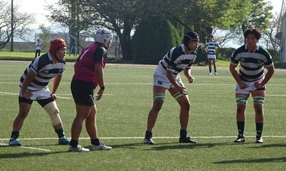 前半11分にペナルティゴールで先制されます。13分に敵陣22m付近のラインアウトからBKに展開してゴール前までせまりFWでサイドを攻め最後にFL丹治がトライし7-3と逆転します。24分に連続攻撃で外に展開しWTB新野が力強いランニングでトライし14-3と突き放します。40分にWTB新野のペナルティゴールで17-3とリードして前半を終了します。